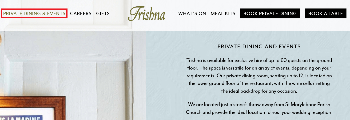 Trishna, an Indian restaurant in London, offers an excellent example of such a page.